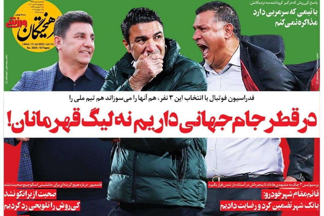تصویر نیم صفحه روزنامههای ورزشی امروز به رشتههای مختلف ورزشی اختصاص یافته است.