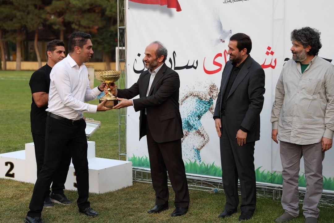 آیین اختتامیه مسابقات فوتبال جام شهدای رسانه ملی با حضور آقای پیمان جبلی رئیس صدا و سیما، برمهانی معاون سیما و رضایی معاون منابع مالی و سرمایه انسانی در مجموعه تربیت بدنی سازمان صدا و سیما برگزار شد.