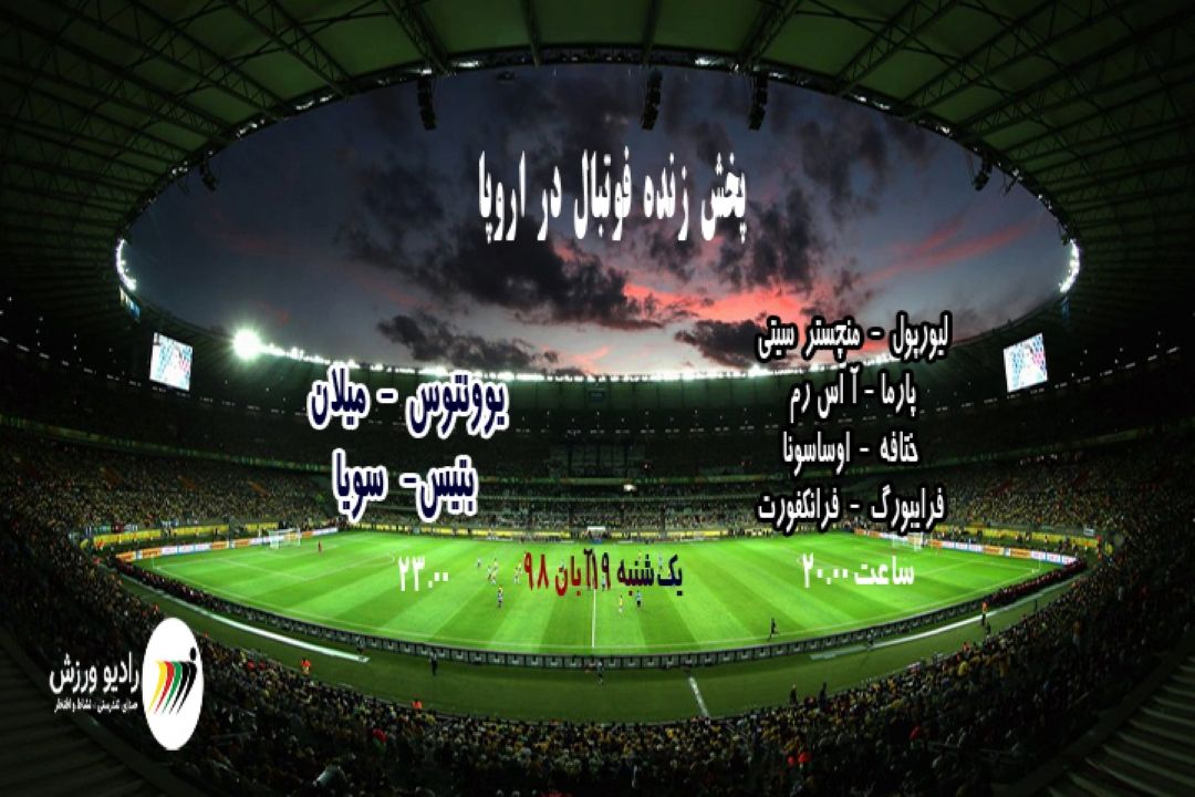 پخش زنده بایرن مونیخ- دورتموند و اوساسونا-بارسلونا مسابقه تیم های بایرن مونیخ- دورتموند و اوساسونا-بارسلونا به صورت زنده از شبكه رادیویی ورزش روی موج FM ردیف 92 مگاهرتز پخش می شود. 4 سال پیش